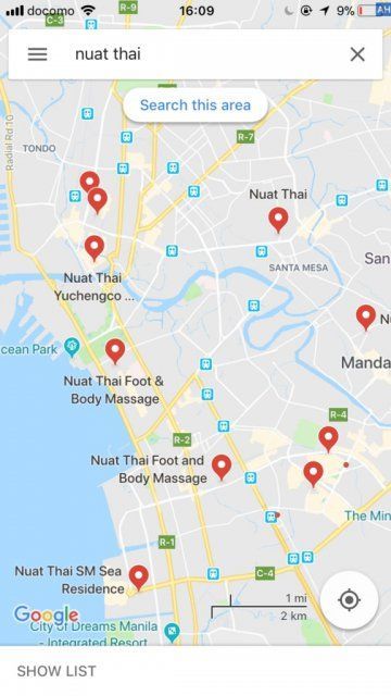 『NUAT THAI』はマニラやセブで展開している格安マッサージのチェーン店です。Google Mapで「NUAT THAI」と検索すれば、候補がたくさん出てきます。